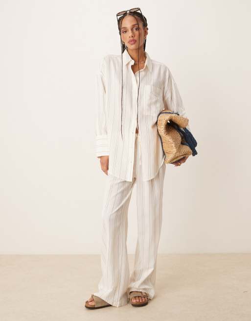 ASOS DESIGN Belle beach set with linen in fine mono stripe