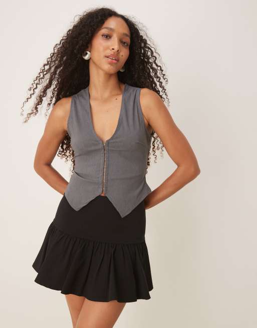 ASOS DESIGN bengaline corset detail waistcoat in grey marl (part of a set)