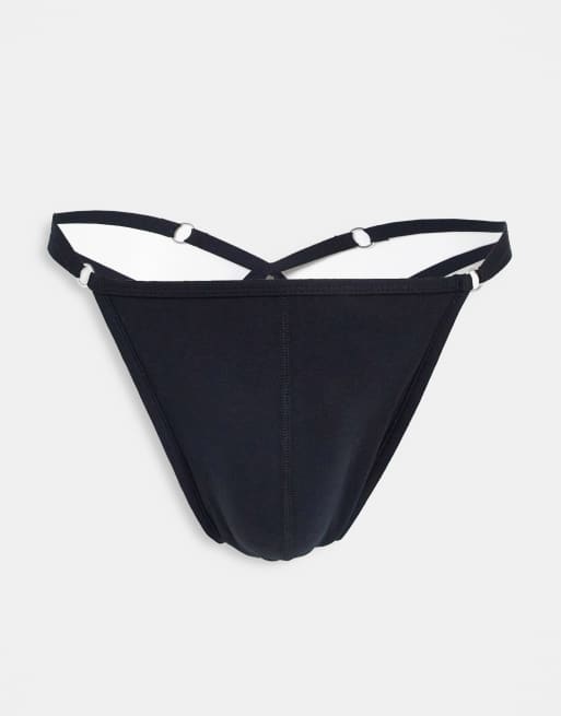ASOS DESIGN black lingerie thong with strap details