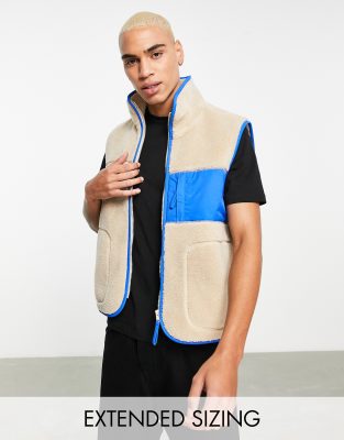 ASOS DESIGN borg vest with contrast pocket in stone