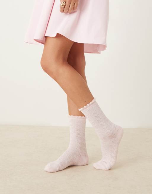 ASOS DESIGN bow jacquard socks in pink with frill
