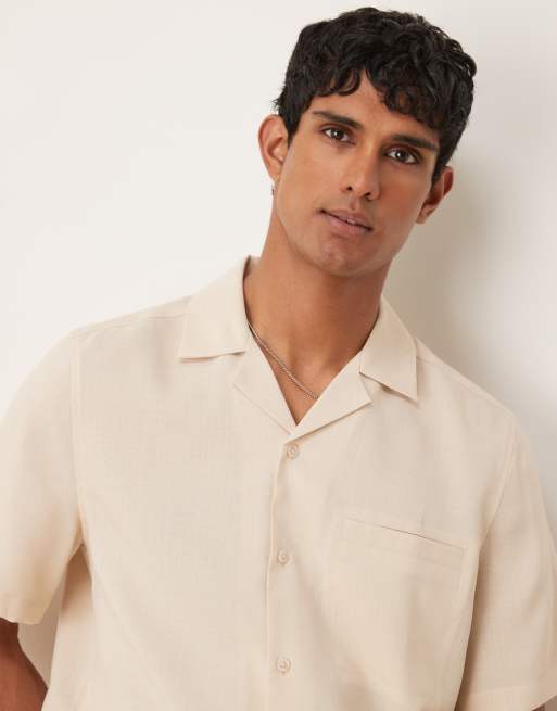 ASOS DESIGN boxy linen look regular fit shirt in stone