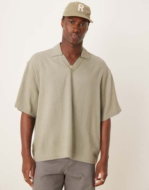 ASOS DESIGN boxy oversized overhead linen blend shirt in khaki