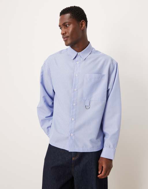 ASOS DESIGN boxy oversized stripe shirt with pocket detail in blue