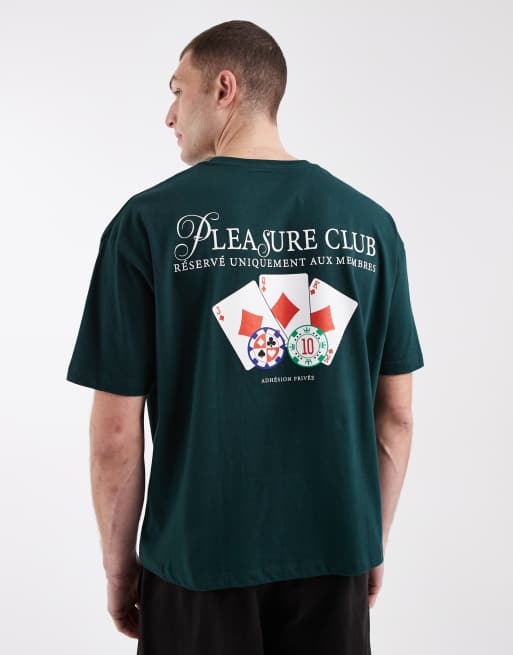ASOS DESIGN boxy oversized t-shirt with cards graphic in dark green