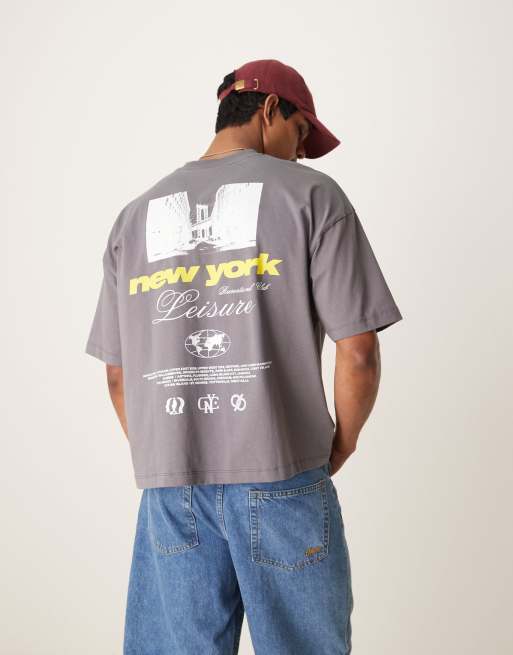 ASOS DESIGN boxy oversized t-shirt with New York graphic in charcoal