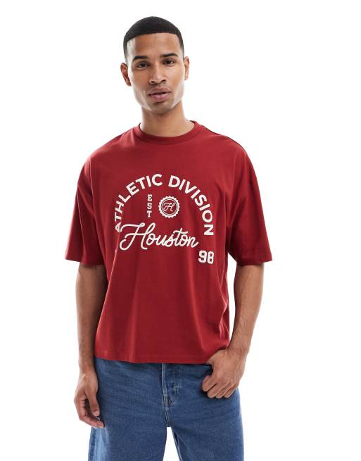 ASOS DESIGN boxy oversized t-shirt with sports graphic in red