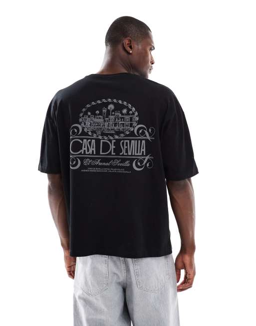 ASOS DESIGN boxy oversized t-shirt with summer graphic in black