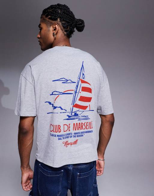 ASOS DESIGN boxy oversized t-shirt with summer graphic in grey marl