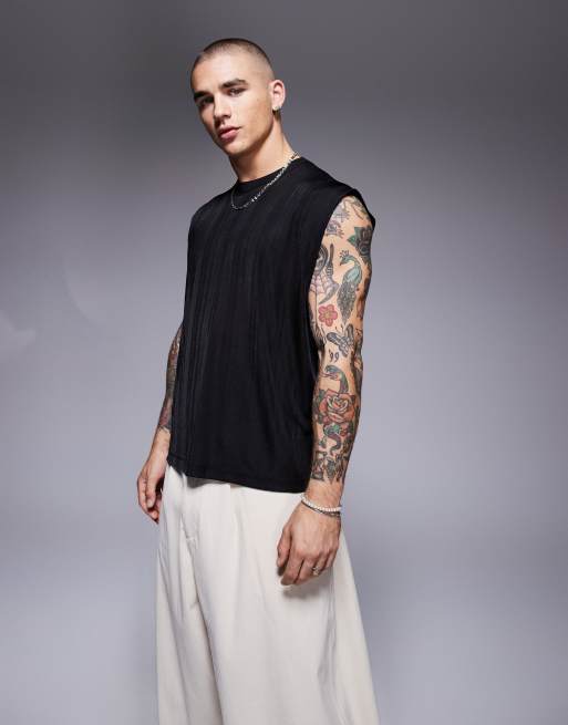 ASOS DESIGN boxy oversized tank top in black sheer rib