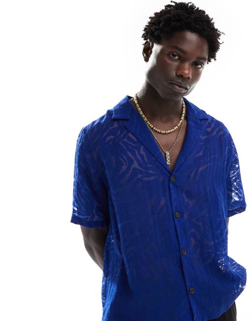 ASOS DESIGN boxy relaxed deep revere collar shirt in cobalt blue