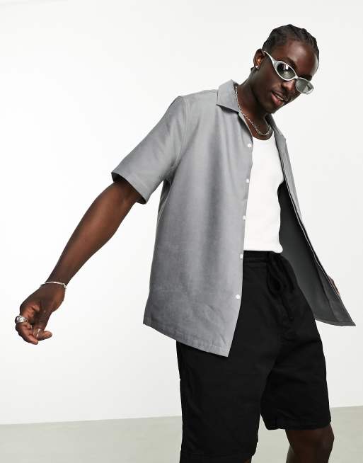 ASOS DESIGN boxy suedette shirt with concealed placket and side splits in grey