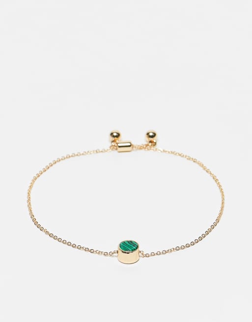 ASOS DESIGN bracelet with malachite style charm in gold tone