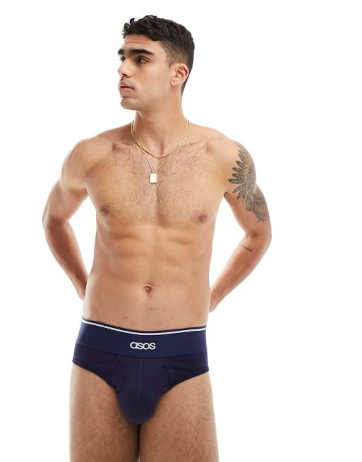 ASOS DESIGN briefs in navy with branding