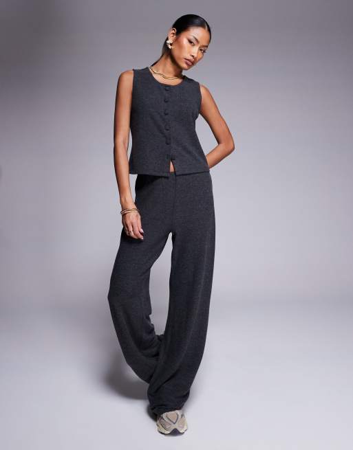 ASOS DESIGN brushed rib wide leg pants in charcoal (part of a set)