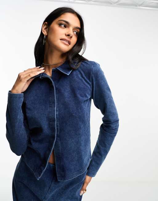 ASOS DESIGN button down shirt in washed denim blue (part of a set)