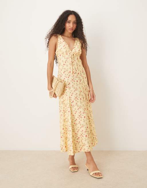 ASOS DESIGN button front sleeveless maxi dress in yellow ditsy print