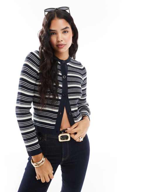 ASOS DESIGN button through half sleeve cardigan in navy stripe