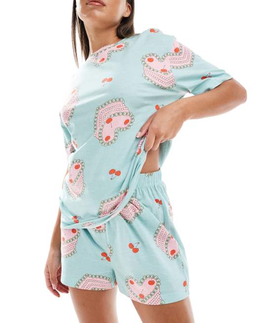 ASOS DESIGN cake oversized tee & shorts pyjama set in blue