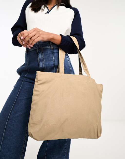 ASOS DESIGN canvas tote bag with laptop compartment in stone