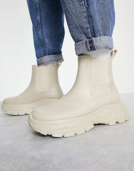 ASOS DESIGN chelsea gumboots with chunky sole in stone