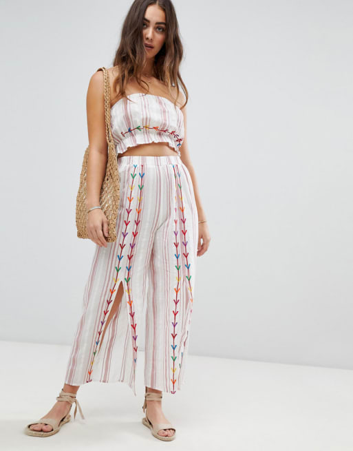 ASOS DESIGN chevron embroidered bandeau beach co-ord top & pant set