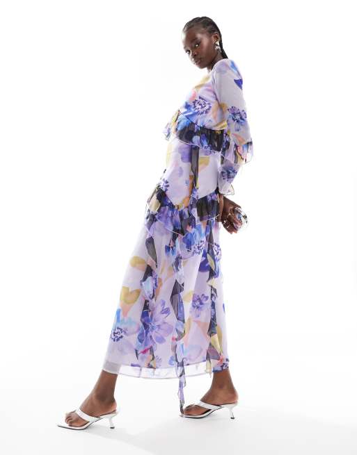 ASOS DESIGN chevron frill maxi dress in mixed purple floral print