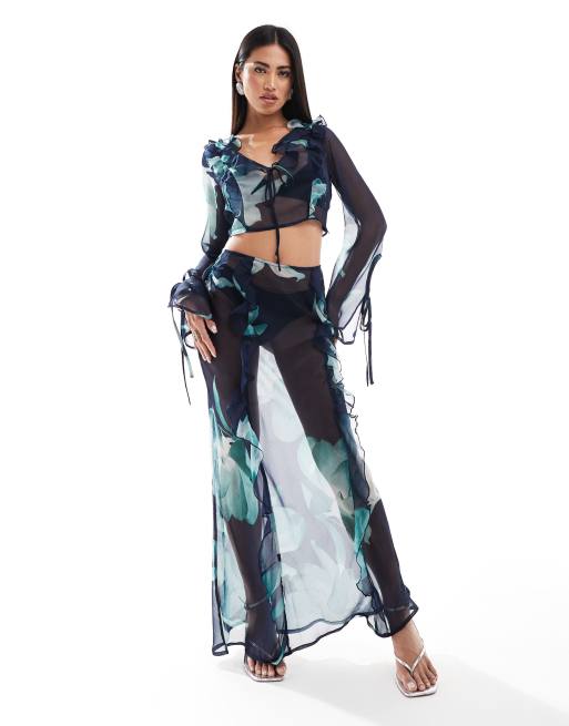ASOS DESIGN chiffon maxi skirt set in blue abstract floral print