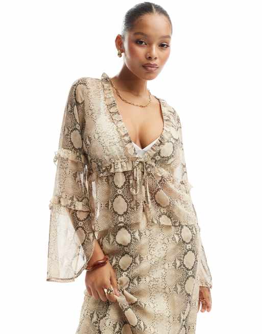 ASOS DESIGN chiffon ruffle detail blouse in snake print