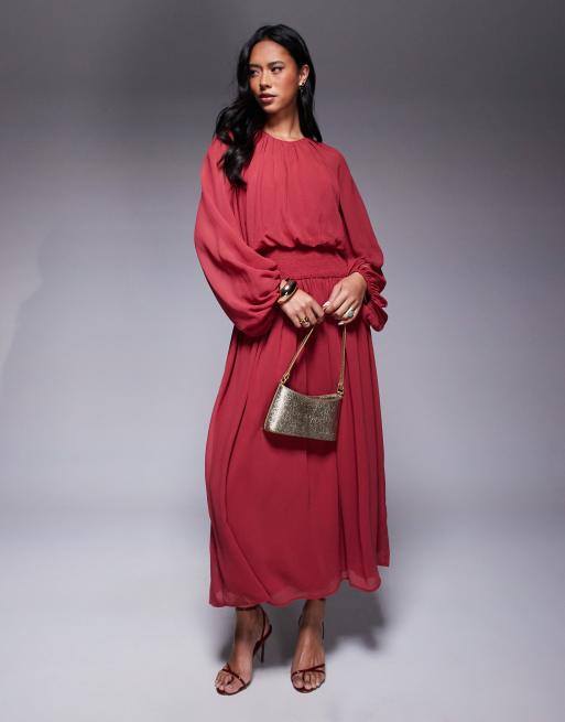 ASOS DESIGN chiffon shirred waist maxi dress in deep cherry