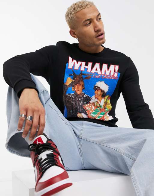 ASOS DESIGN Christmas sweatshirt with Wham print in black