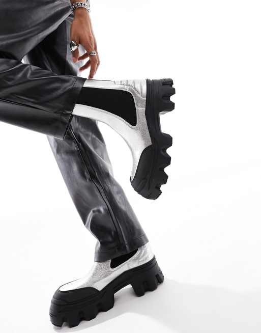 ASOS DESIGN chunky chelsea boots in silver