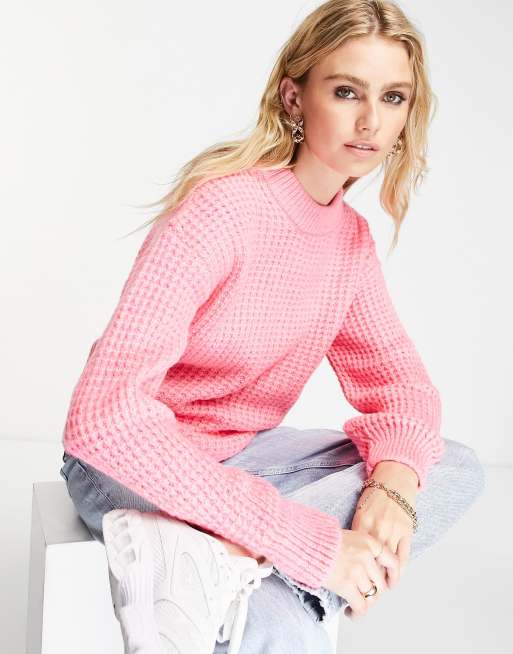 ASOS DESIGN chunky jumper with crew neck in textured stitch in pink