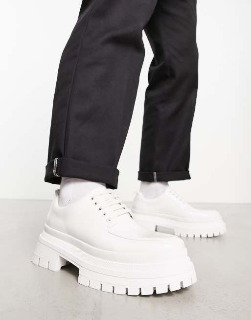 ASOS DESIGN chunky lace up shoes with apron seam detail in white faux leather