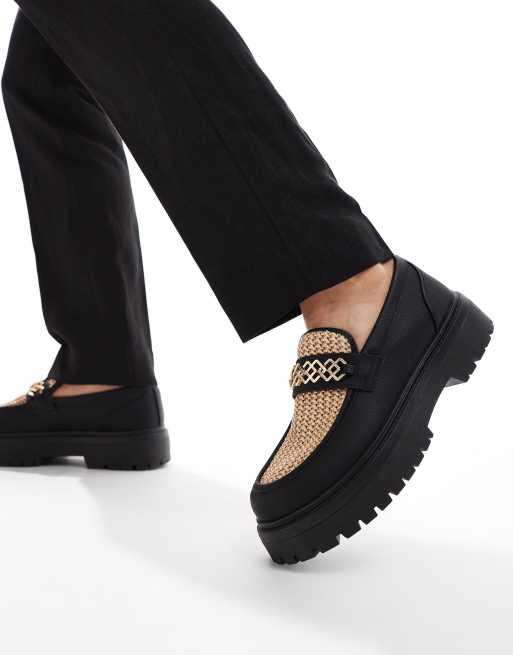 ASOS DESIGN chunky loafers in black with natural weave