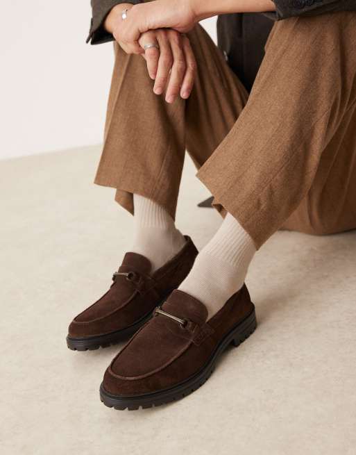 ASOS DESIGN chunky loafers in brown suede with snaffle