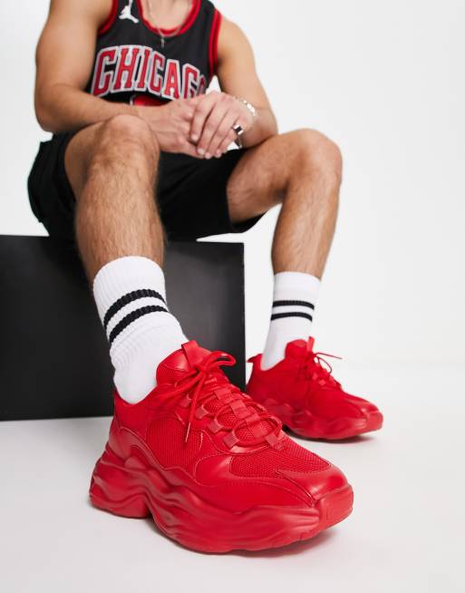 ASOS DESIGN chunky sneakers with mesh panelling in red