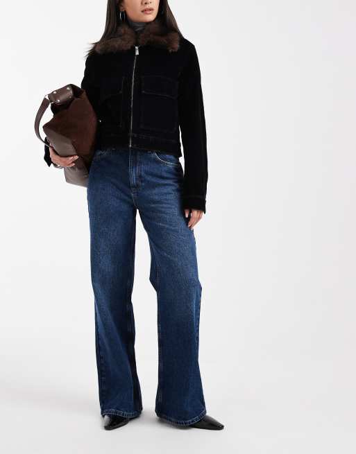 ASOS DESIGN cinch-back belt mid-rise jeans in mid blue