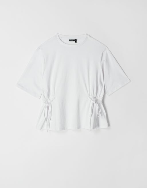 ASOS DESIGN cinch tie side t-shirt in white