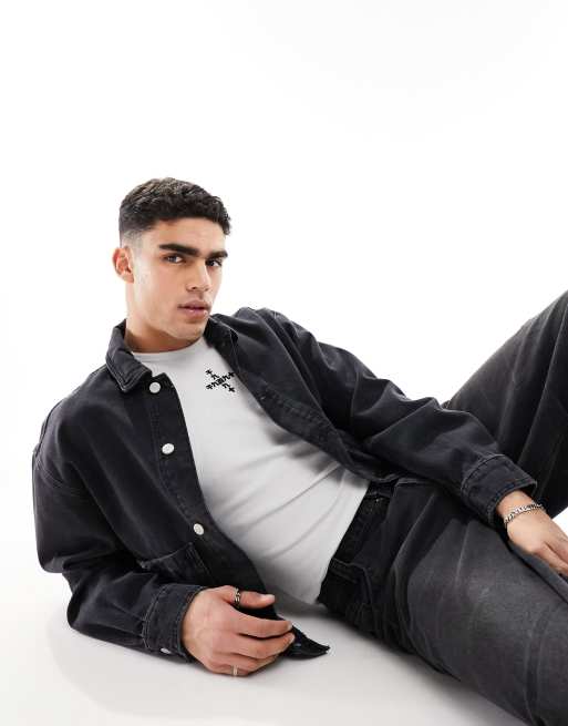 ASOS DESIGN classic fit denim jacket with front pockets in black