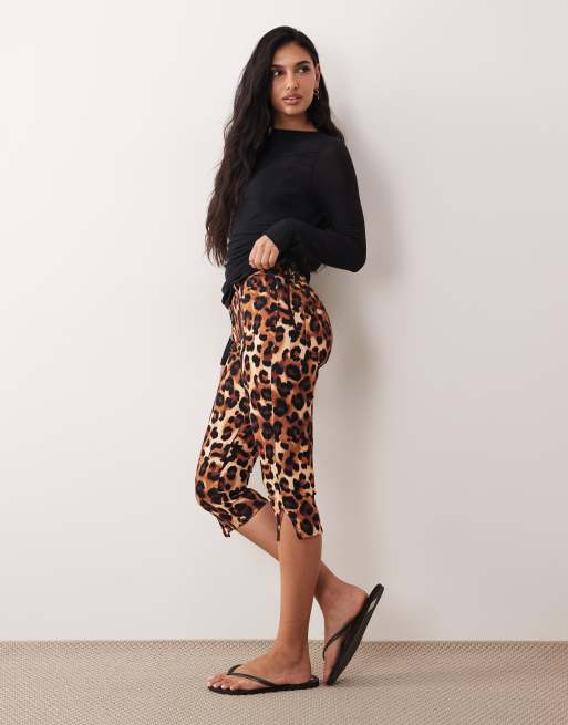 ASOS DESIGN clean denim capris in leopard print