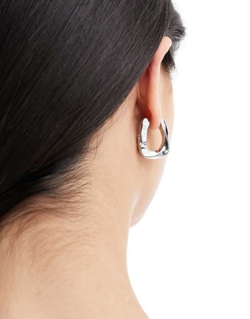 ASOS DESIGN clicker hoop earrings with squared off twisted chain link detail in silver tone
