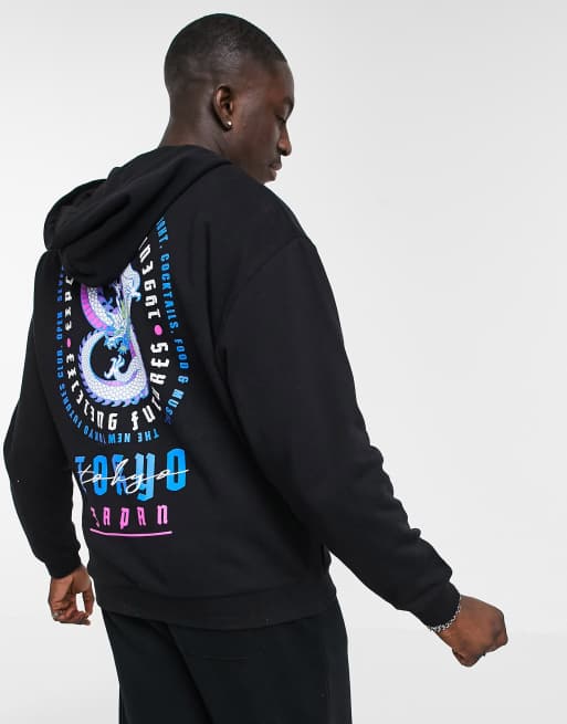 ASOS DESIGN co-ord oversized hoodie with dragon back print in black