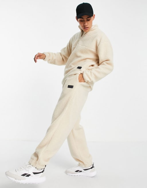 ASOS DESIGN co-ord oversized teddy borg half-zip sweatshirt and trackies in off-white