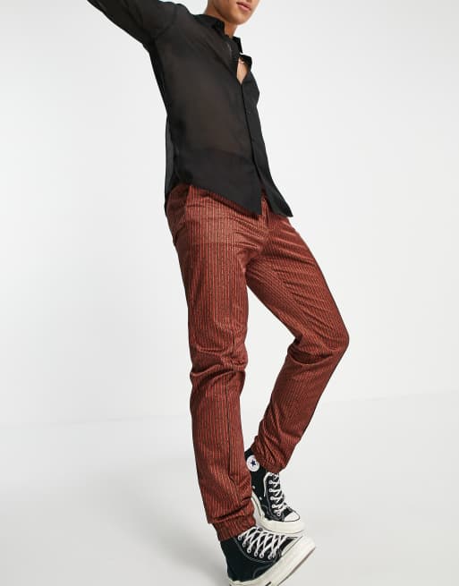 ASOS DESIGN co-ord slim smart pants with retro stripe in rust