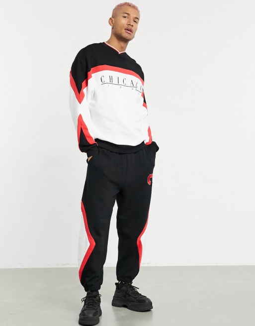 ASOS DESIGN co-ord tracksuit with Chicago print and retro colour-block