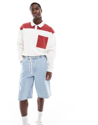 ASOS DESIGN colour block extreme oversized polo sweatshirt in white and red