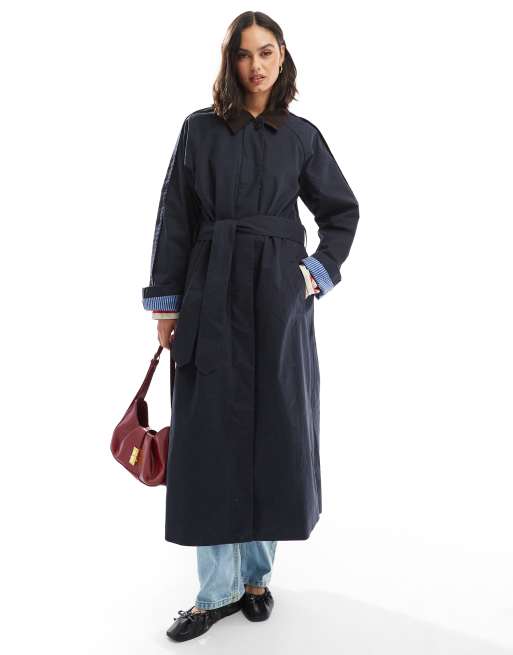 ASOS DESIGN cord collar trench coat in navy