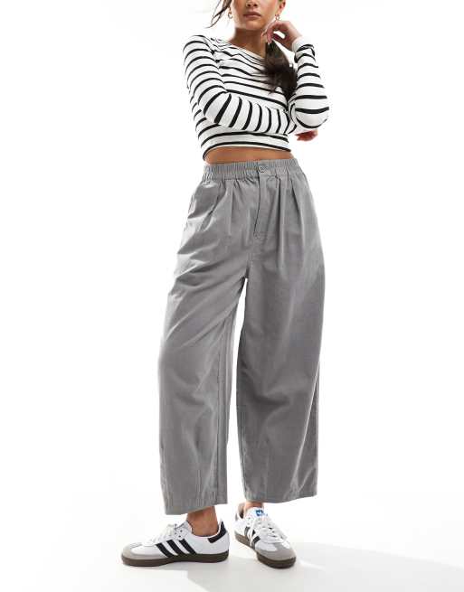 ASOS DESIGN cord cropped balloon pants in grey