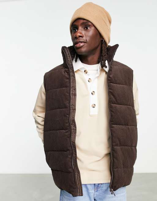 ASOS DESIGN cord puffer vest in brown